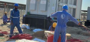 Solar Frame on Mon opole at DXB-1831 DU Description Installation, Testing & Commissioning of Solar PV Modules Year 2022 Client Name DU / Al Babtain Le BLANC Description Installation, Testing & Commissioning of Solar PV Modules, Installation of Battery Bank, Battery Cabinets, & Solar Cabinet At Monopole